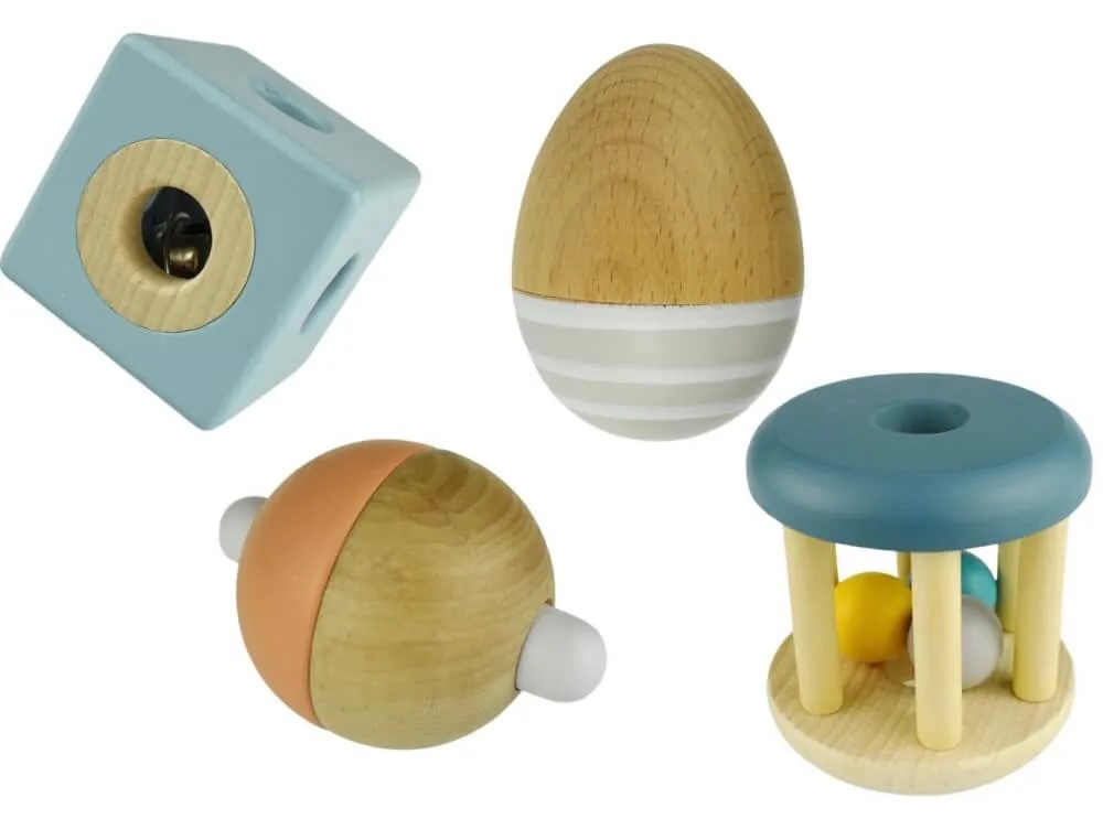 This baby musical set features an egg maraca, a ball squeeze toy, a cube shaker and a cylinder shaker and roller rattle. It’s easy to hold, lightweight, perfect for babies to discover, grasp, teething relief. As they shake or move them, they make a lovely, gentle sound. It delight and encourage babies to explore more of their surroundings.