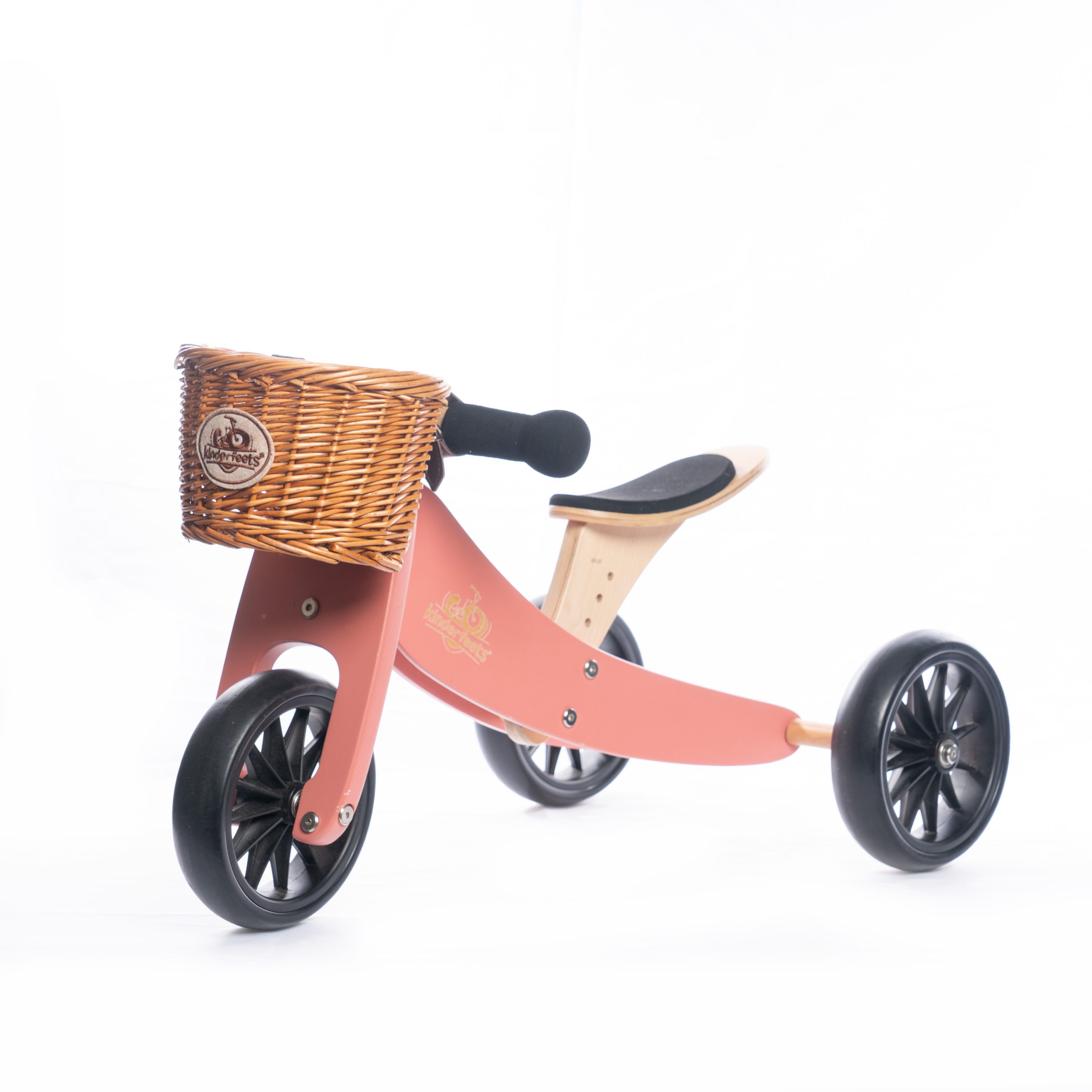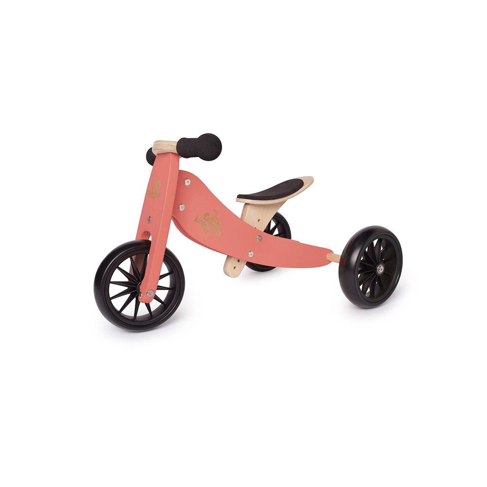 The Kinderfeets Tiny Tot can doubling as both a tricycle and a 2-wheel balance bike when children are ready to ride. As the smallest balance bike on the market, the Tiny Tot suits ages 12 to 24 months. With an adjustable seat height, its comfortable and intentional design allows Tiny Tots to ride safely and fearlessly.